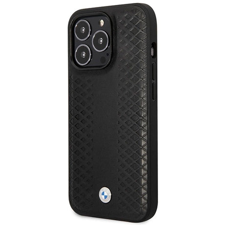 Case BMW BMHMP14X22RFGK iPhone 14 Pro Max 6.7" sort/sort læder Diamond mønster MagSafe