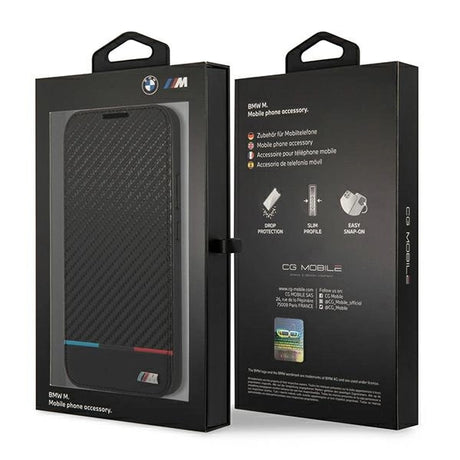 Case BMW BMHMP14X22PTDK iPhone 14 Pro Max 6,7 "sort / sort læderstempel Tricolor Magsafe