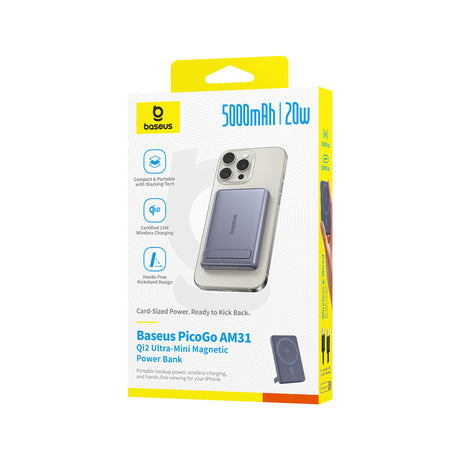 Baseus powerbank med stand PicoGo Qi2 5000mAh 20W (blå)
