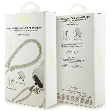 Guess CBDY 4G Charm USB-C / USB-C-kabel 150 cm - beige