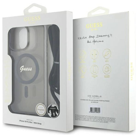 Guess Crossbody Cord Script MagSafe Case til iPhone 16 Pro Max - sort