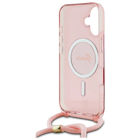 Guess Crossbody Cord Script MagSafe iPhone 16 Case - Pink