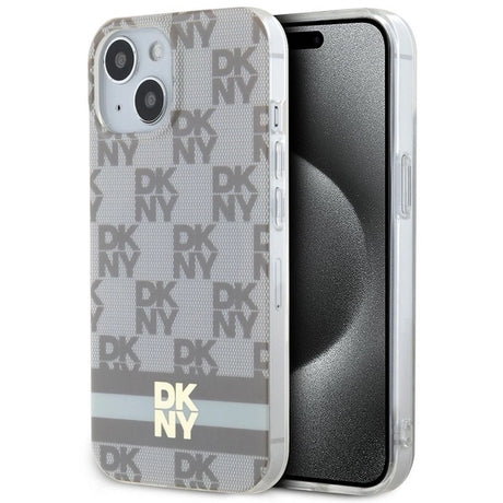 DKNY IML Checkered Mono Pattern & Printed Stripes MagSafe-kasse til iPhone 15 / 14 / 13 - beige