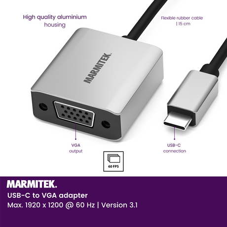 Marmitek USB-C til VGA adapter. 0,15m