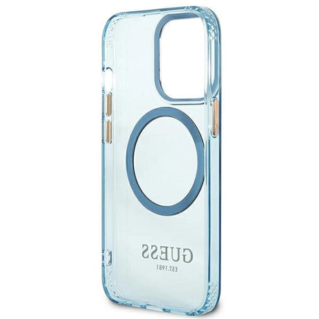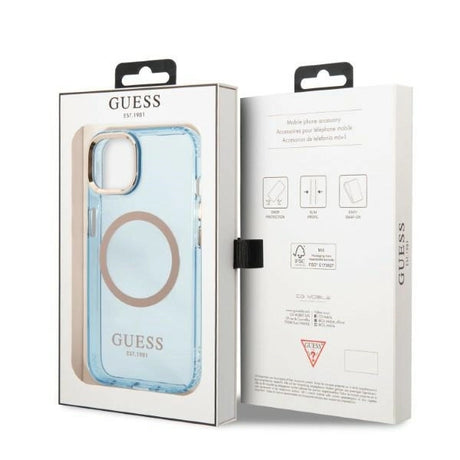 Guess Gold Outline Gennemskinnelig MagSafe-hylster til iPhone 13 - blå