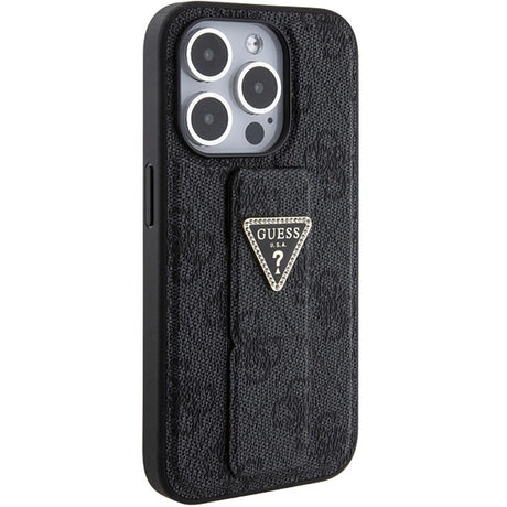 Guess Grip Stand 4G Triangle Strass fodtøj til iPhone 15 Pro - sort