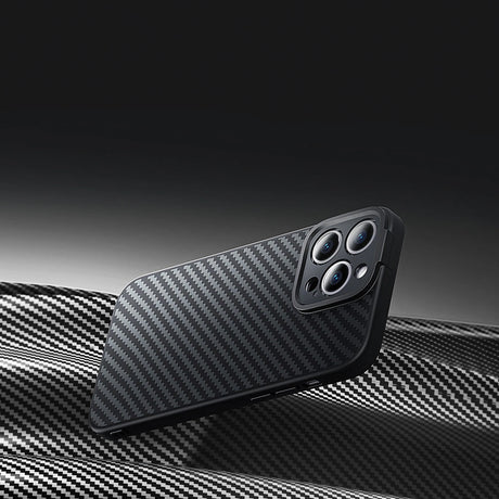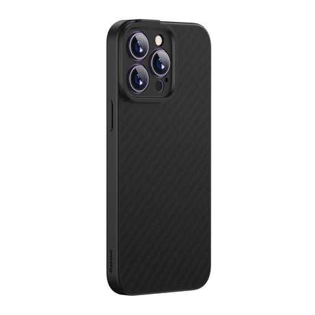 Pansret etui til iPhone 14 Pro Max kompatibel med MagSafe Baseus syntetisk fiber hærdet glas - sort