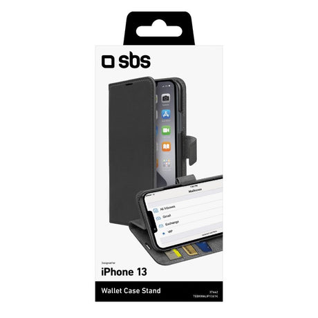 SBS Book Wallet Case med standerfunktion til iPhone 14/13. Sort