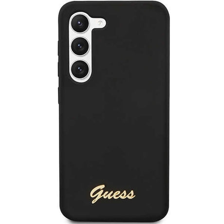 Guess GUHCS23SSLSMK S23 S911 sort/sort hardcase Silicone Vintage Gold Logo