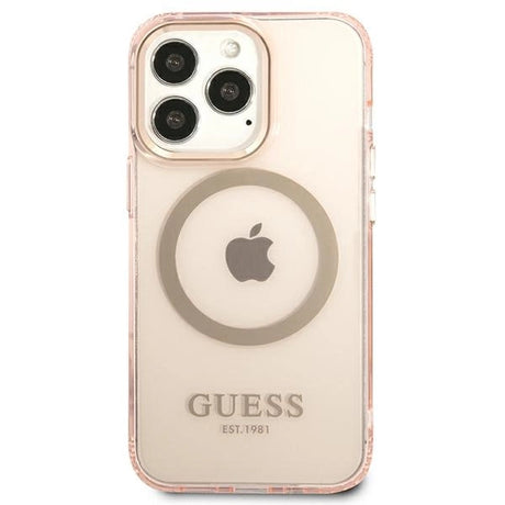Guess GUHMP13LHTCMP iPhone 13 Pro / 13 6.1" pink/pink hard case Gold Outline Translucent MagSafe