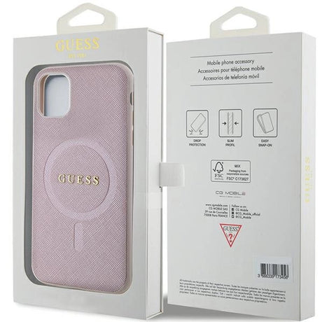 Guess GUHMN61PSAHMCP fodtøj til iPhone 11 / Xr - pink Saffiano MagSafe