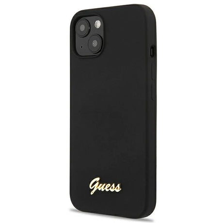 Guess GUHMP13MLSLMGBK iPhone 13 6.1" sort/sort hardcase Silicone Script Gold Logo Magsafe