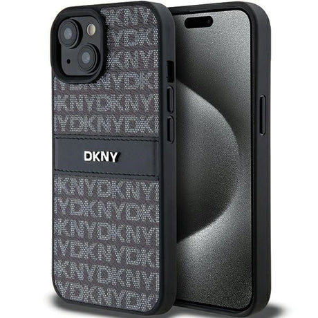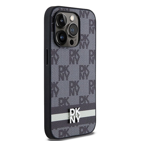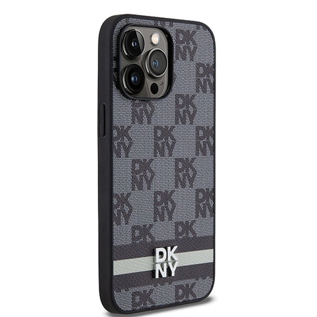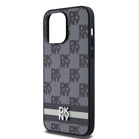 DKNY læder med krydsede mono mønstre og trykte striber Case til iPhone 15 Pro Max - sort