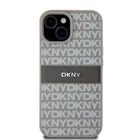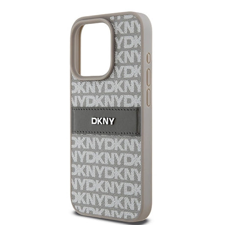 DKNY læder Mono Stripe & Metal Logo case til iPhone 15 Pro Max - beige