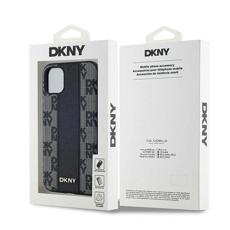 DKNY læder med krydsede mono mønstre og trykte striber - kuffert til iPhone 15 Plus / 14 Plus - sort