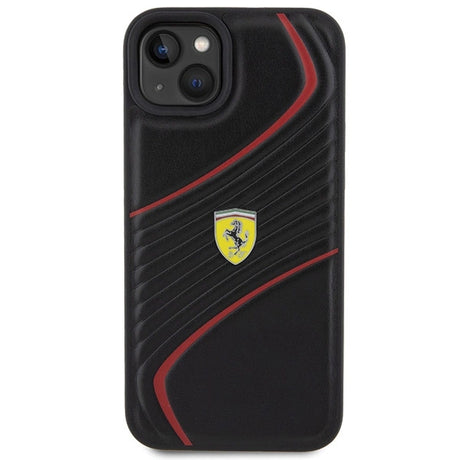 Ferrari Twist Metal Logo-foder til iPhone 15 Plus - sort