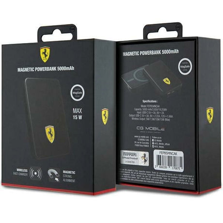Powerbank Ferrari Metal Logo MagSafe 15W 5000mAh - sort