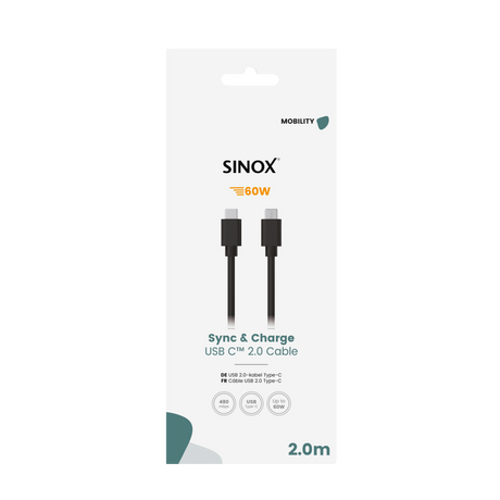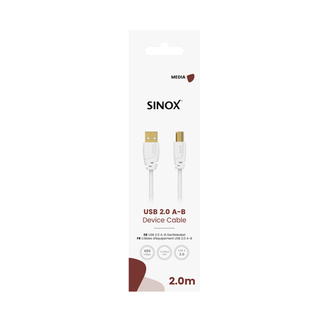 Sinox USB 2.0 kabel. 1,8m. Hvid