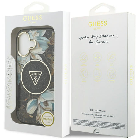 Guess IML Glitter Flowers Triangle MagSafe-hylster til iPhone 17 - sort