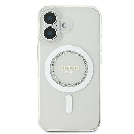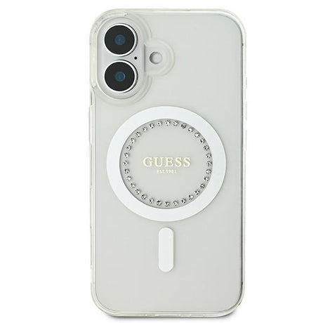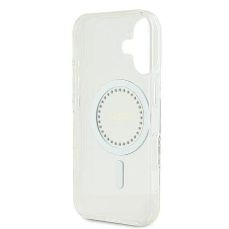Guess IML Rhinestones MagSafe Case til iPhone 16 Plus - hvid