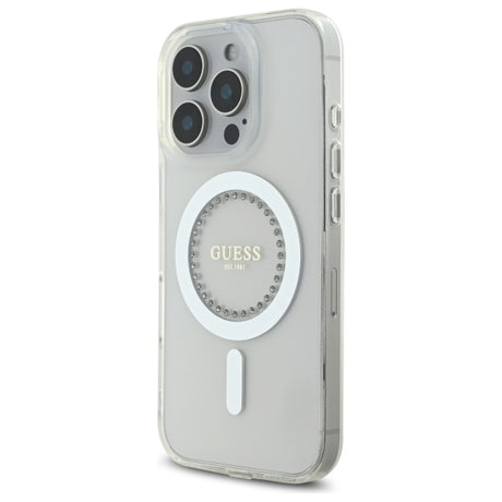 Guess IML Rhinestones MagSafe Case til iPhone 16 Pro - hvid