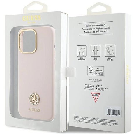 Guess Silicone Logo Strass 4G-hylster til iPhone 16 Pro - lyserød