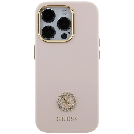 Guess Silicone Logo Strass 4G-hylster til iPhone 15 Pro - lyserød