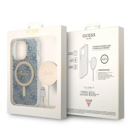 Set Guess GUBPP14LH4EACSB Case+ Charger iPhone 14 Pro 6,1" blå/blå hårdkasse 4G Print MagSafe