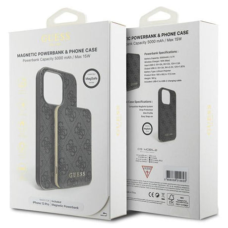 Guess 4G Metal Logo-kasset til iPhone 13 Pro + 5000mAh MagSafe powerbank - sort