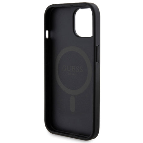 Guess 4G Metal Logo-kasset til iPhone 15 + 5000mAh MagSafe powerbank - sort