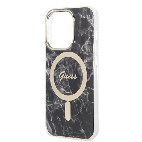 Set Guess GUBPP14LHMEACSK Case+ Charger iPhone 14 Pro 6.1" sort/sort hårdkasse Marble MagSafe