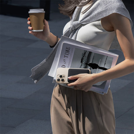 Baseus EnerFill FC21 Qpow 3 Ultra 10000mAh 22.5W Powerbank med tilkoblet kabel lanyard - beige