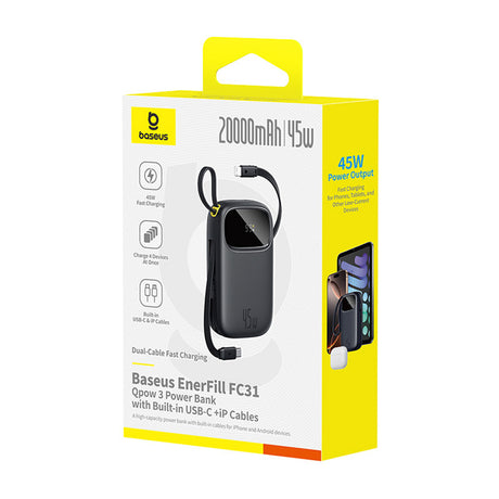 Baseus EnerFill FC31 20000mAh 45W Power Bank med display med USB-C og Lightning Kabler - sort
