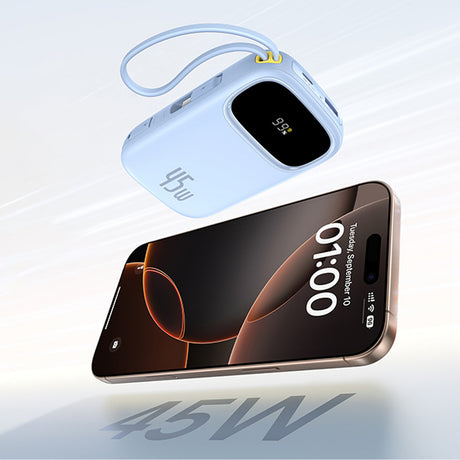 Baseus EnerFill FC21 Qpow 3 Ultra 10000mAh 45W Power Bank med vedhæftet Lanyard Cable - sort