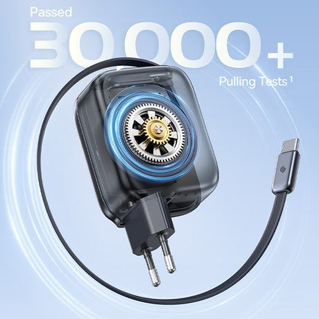 Baseus EnerCore CJ11 45W Wall Charger med USB-C-port og indtrækbart USB-C-kabel - sort
