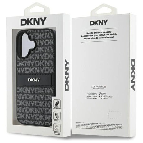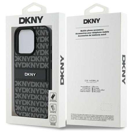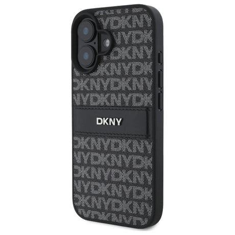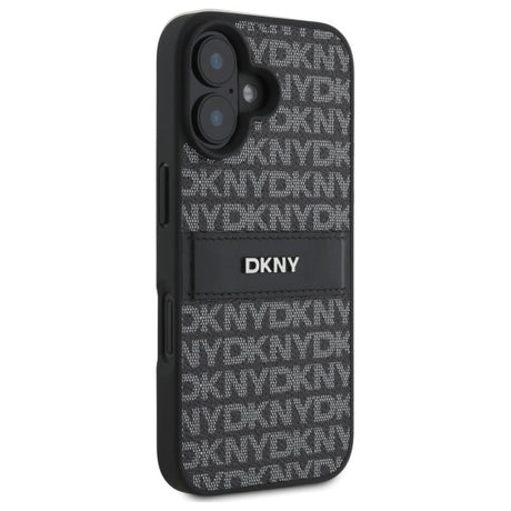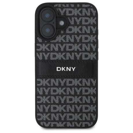 DKNY Repeat Texture Pattern med Stripe-kasse til iPhone 16 Pro Max - sort