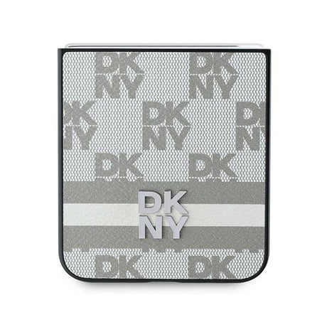 DKNY-kasse med rækformet mønster med trykte striber til Samsung Galaxy Z Flip 6 - beige