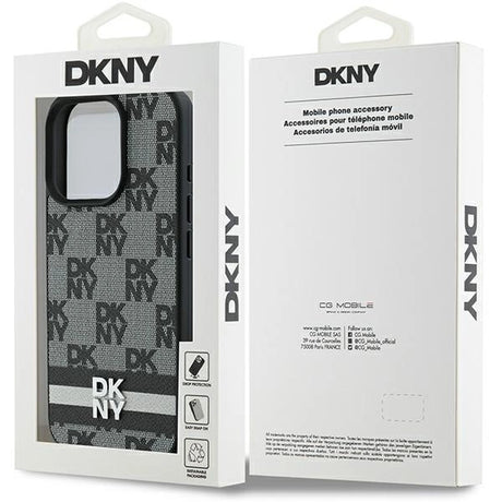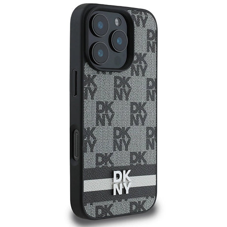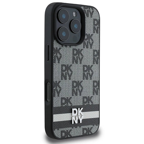 DKNY-kasse med rækker og trykte striber til iPhone 16 Pro Max - sort