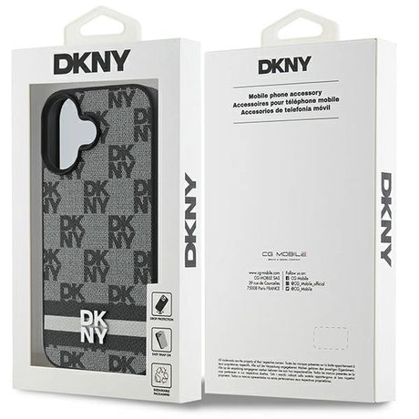 DKNY-kasse med rækkermønster og trykte striber til iPhone 16 - sort