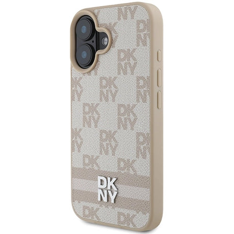 DKNY-kagermønster og trykte striber iPhone 16-kasse - Pink