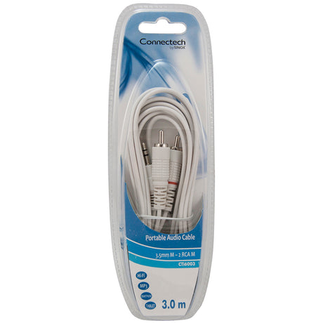 Connectech 3,5mm mini jack til phono kabel. 3m. Hvid
