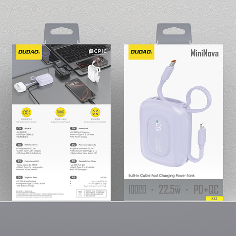 Dudao A26T GaN 25W USB-A, USB-C oplader - hvid