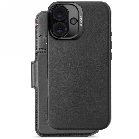 Decoderet læder aftagelig tegnebog MagSafe-kasse med tegnebog til iPhone 16 - sort