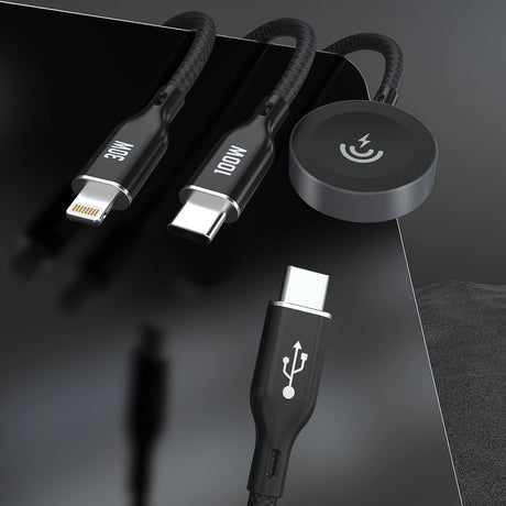 Apple Watch Dudao A12Max + PD 100W 3in1 oplader Kabel: USB-C Lightning 1,2 m - sort