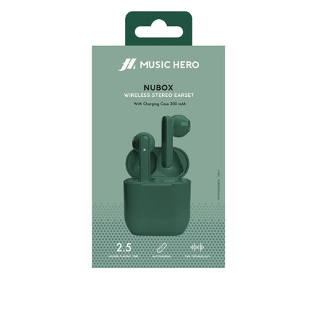 Nubox True Wireless Stereo høretelefoner. Grøn