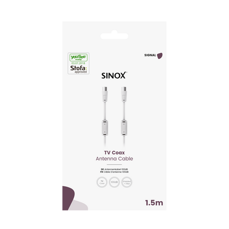 Sinox antennekabel. YouSee & Stofa godkendt. 1,5m. Hvid