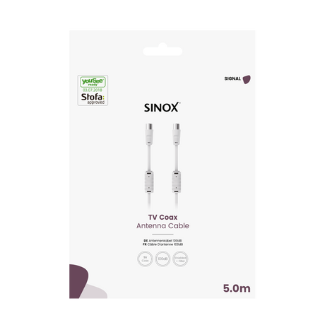 Sinox antennekabel. YouSee & Stofa godkendt. 5m. Hvid