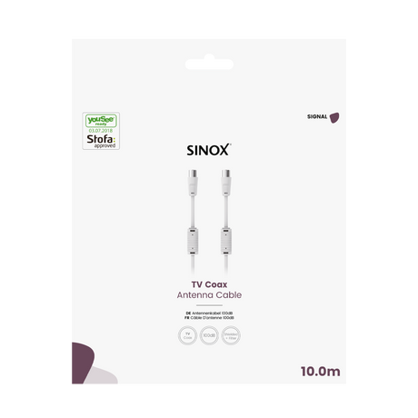 Sinox antennekabel. YouSee & Stofa godkendt. 10m. Hvid