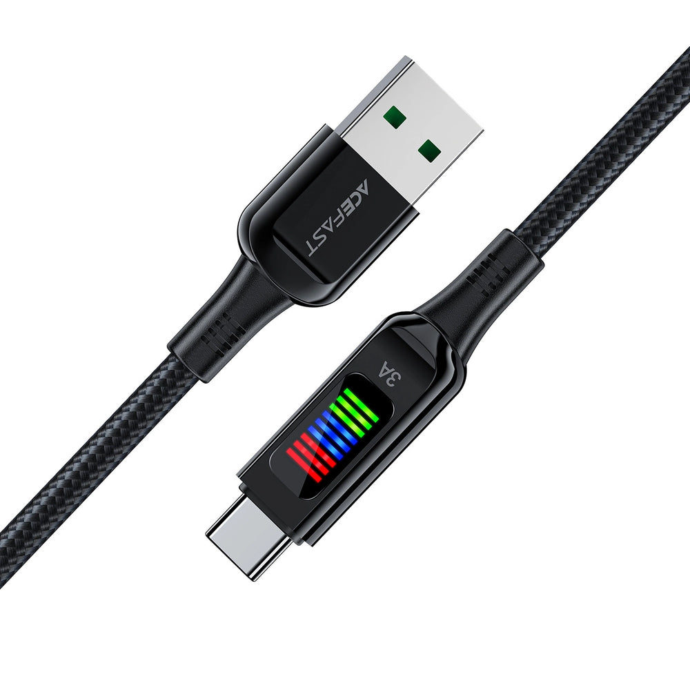 Acefast C7-04 cable with USB-A and USB-C connectors, display, 60W, 1.2m long - black