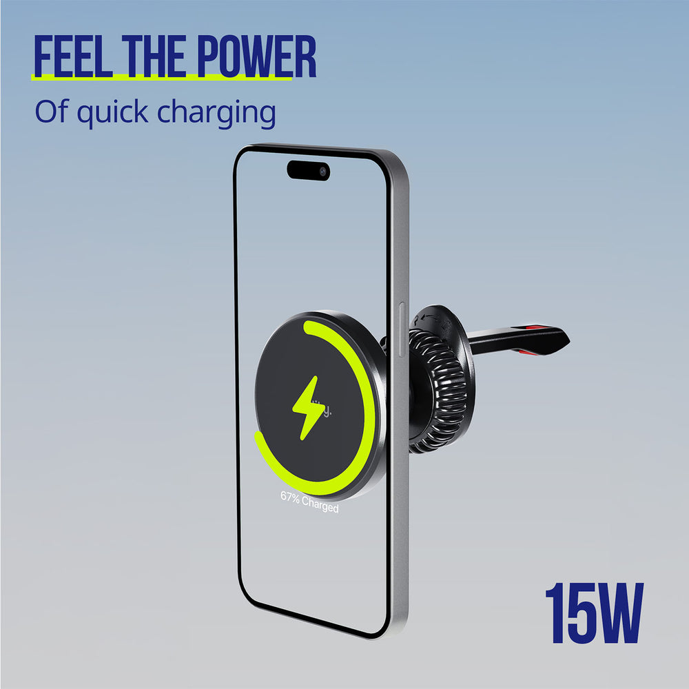 Allity car holder for air vent ACH-300 magnetic with wireless charging black 15W .